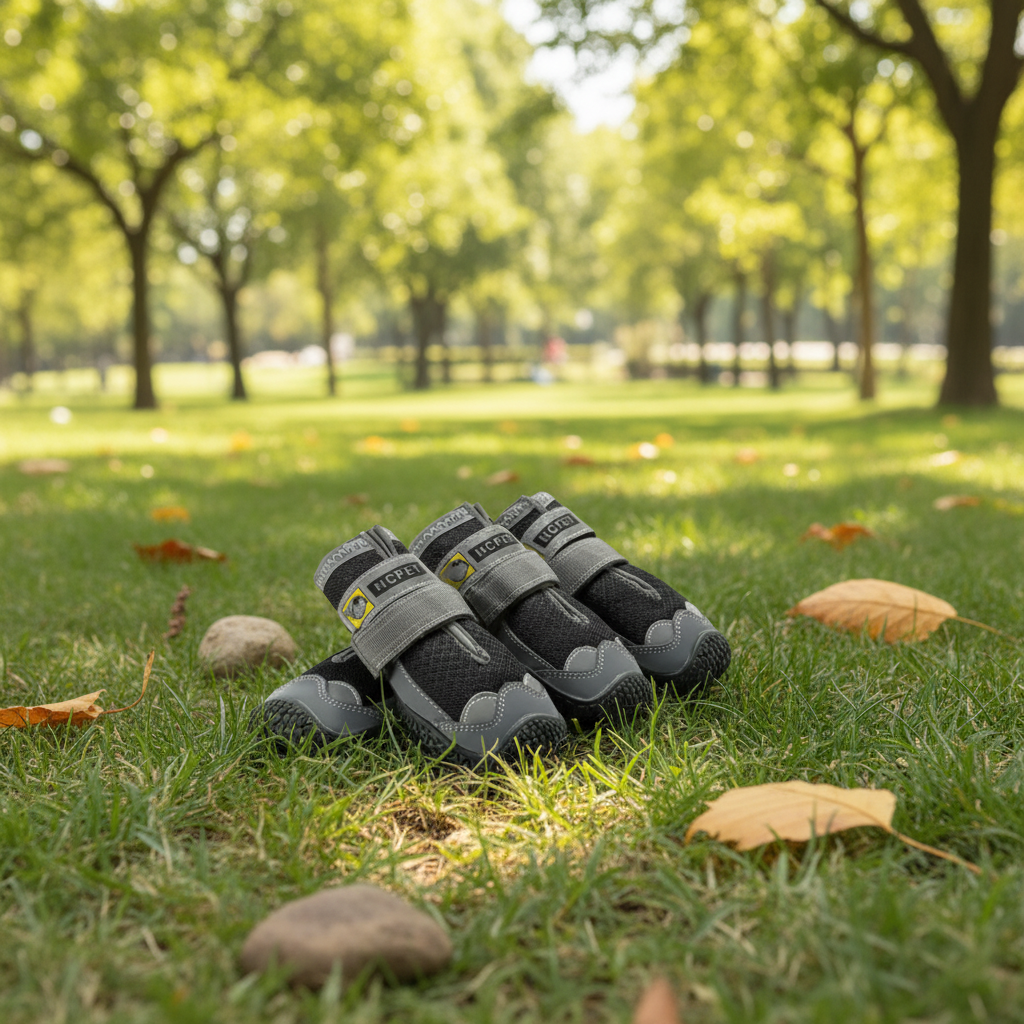 Premium all-weather dog shoes with waterproof protection. Non-slip soles, adjustable straps, and breathable design. Perfect for hot pavement, snow, and rain.